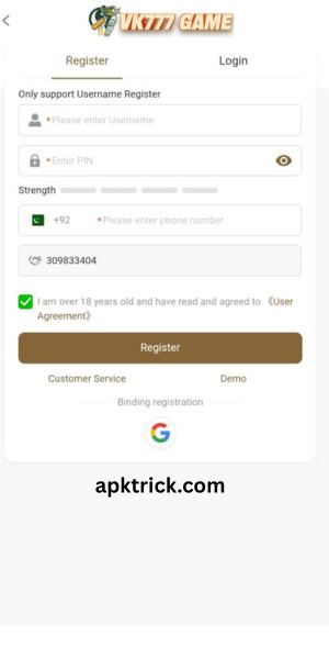 How to Create Account on VK777 Game App